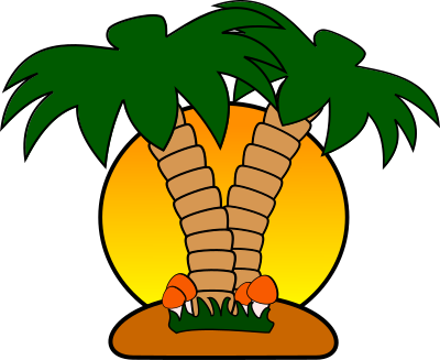 An island with palm trees and mushrooms.
