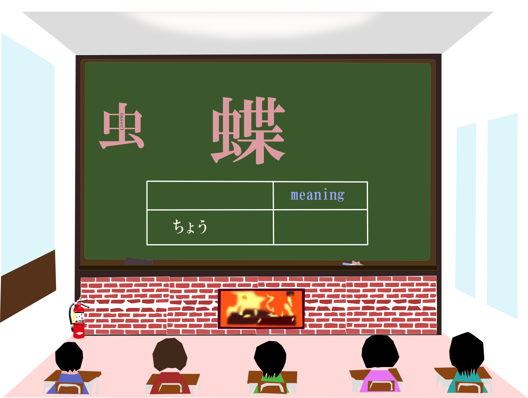 a kanji which is read as "chou" and means "butterfly" and includes a radical or bushu called "mushihen"