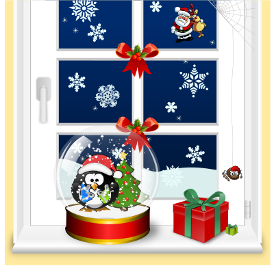 - bird Christmas decoration friends glass holidays penguin penguins present snow snow globe spider Tux window window view winter Xmas
