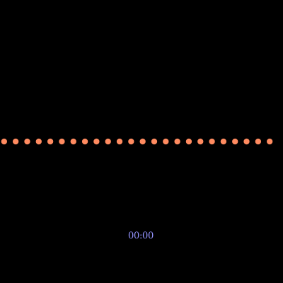 Another "everything comes together after 2 minutes", based on a reddit submission [http://www.reddit.com/r/gifs/comments/2on8si/connecting_to_server_so_mesmerizing/]. Each point has a frequency difference of 1/120 Hz, giving a beat frequency of 2 minutes.