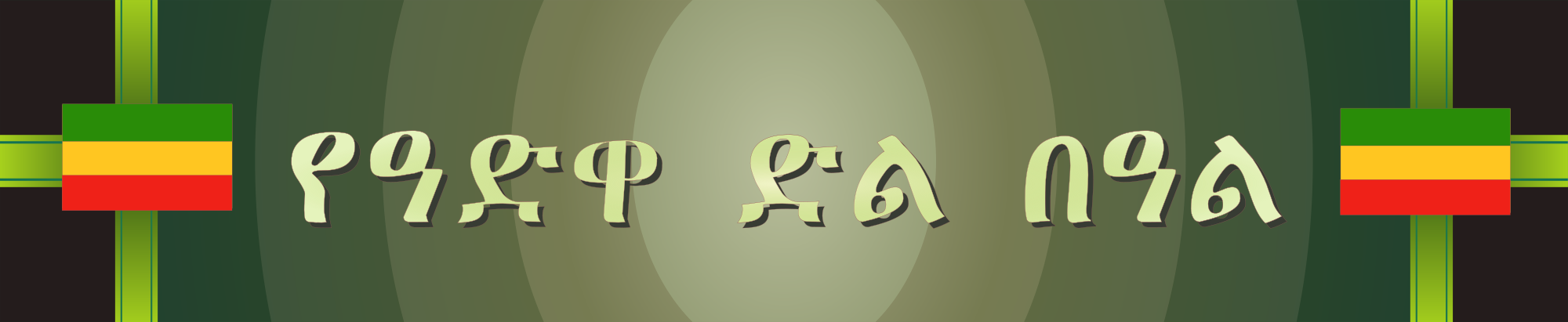 Let's embrace some of the holidays of the world! March 2nd is a public holiday in Ethiopia, it is known as "Victory at Adwa Day" (or in Amharic: የዓድዋ ድል በዓል) It's a holiday celebrating the defeat of invading Italian forces way back in 1896. This is a banner with the Ethiopian colours (not quite the modern flag) and Amharic text proclaiming the holiday. Hey, you can celebrate too. Just wish everyone a happy victory at Adwa on next March 2nd! ;)