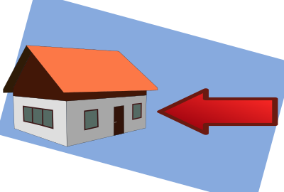 Image of house on skewed background with arrow