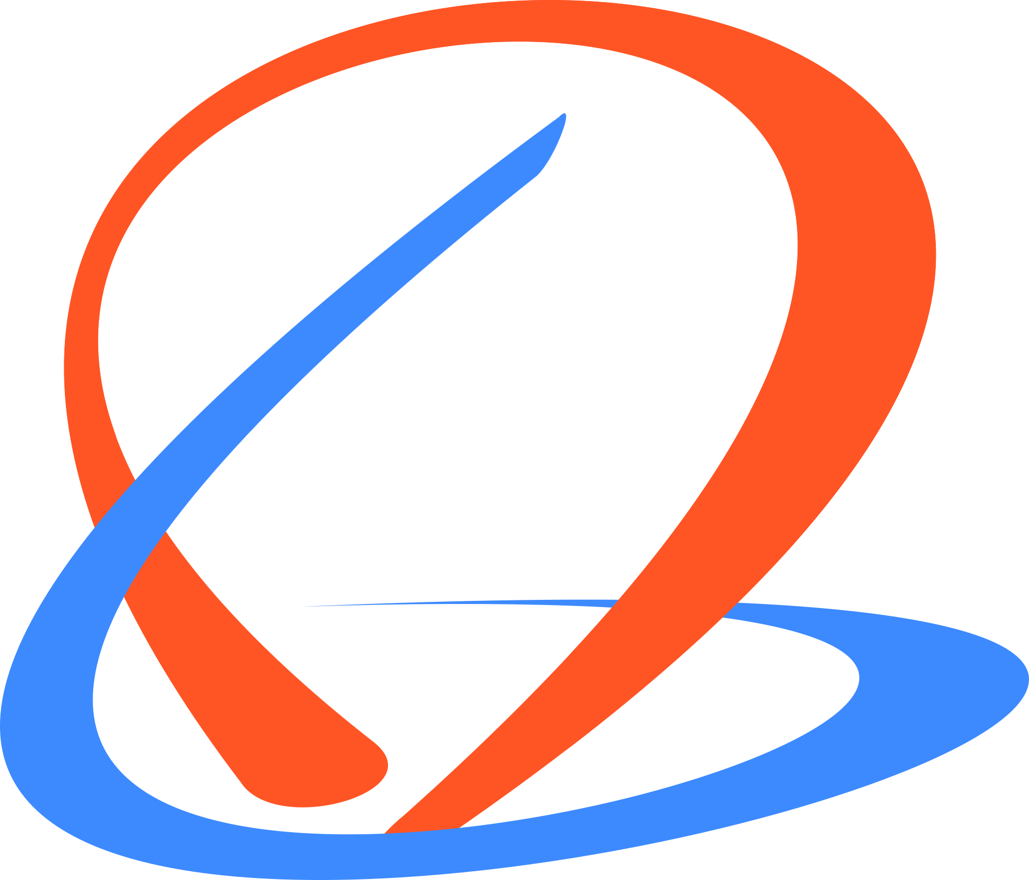 Swirly logo in red and blue.