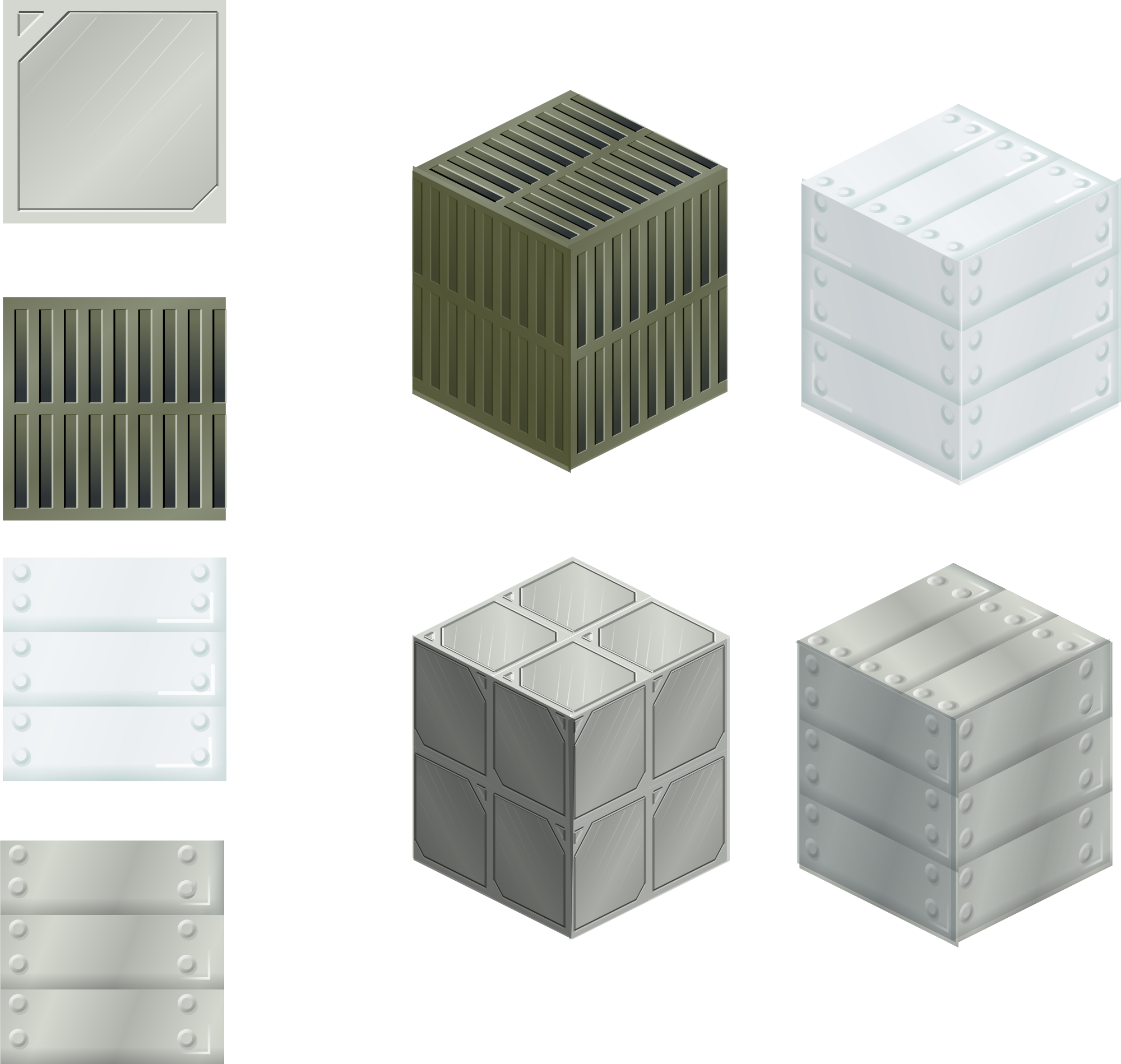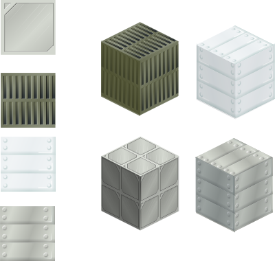 Set of four vectorial tiles usable as textures or tiles. The example include for metal boxes made with them.