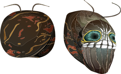 This glitch clipart is about avatar, wardrobe, hat, caterpillar, mask, 01.