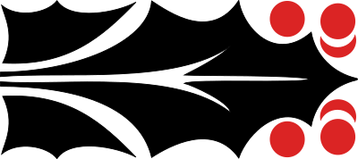 A holly leaf & berries, stylized, for Christmas/holiday decoration. Based off of an old letterpress printer's decoration seen on the internet.