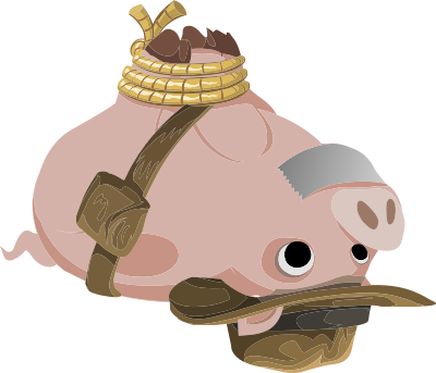 This glitch clipart is about quest, items, hogtied, piggy, explorer.