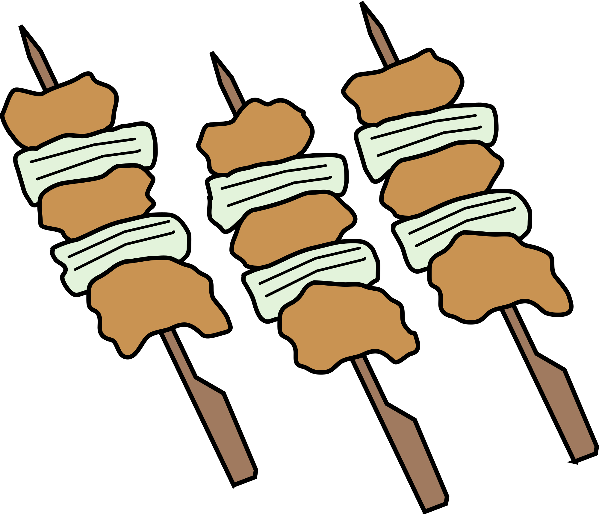 In my quest to fill up all the gaps in openclipart.org (a never ending task!) I thought I would provide some "yakitori". That's like cooked meat (and some veggies like the green onion above!) on sticks. Grab some beer and enjoy!