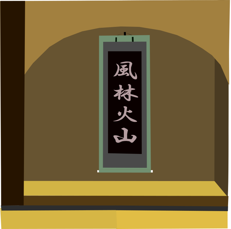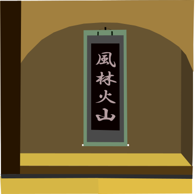 are read as "fuu-rin-ka-zan" meaning "wind,woods,fire,mountain"