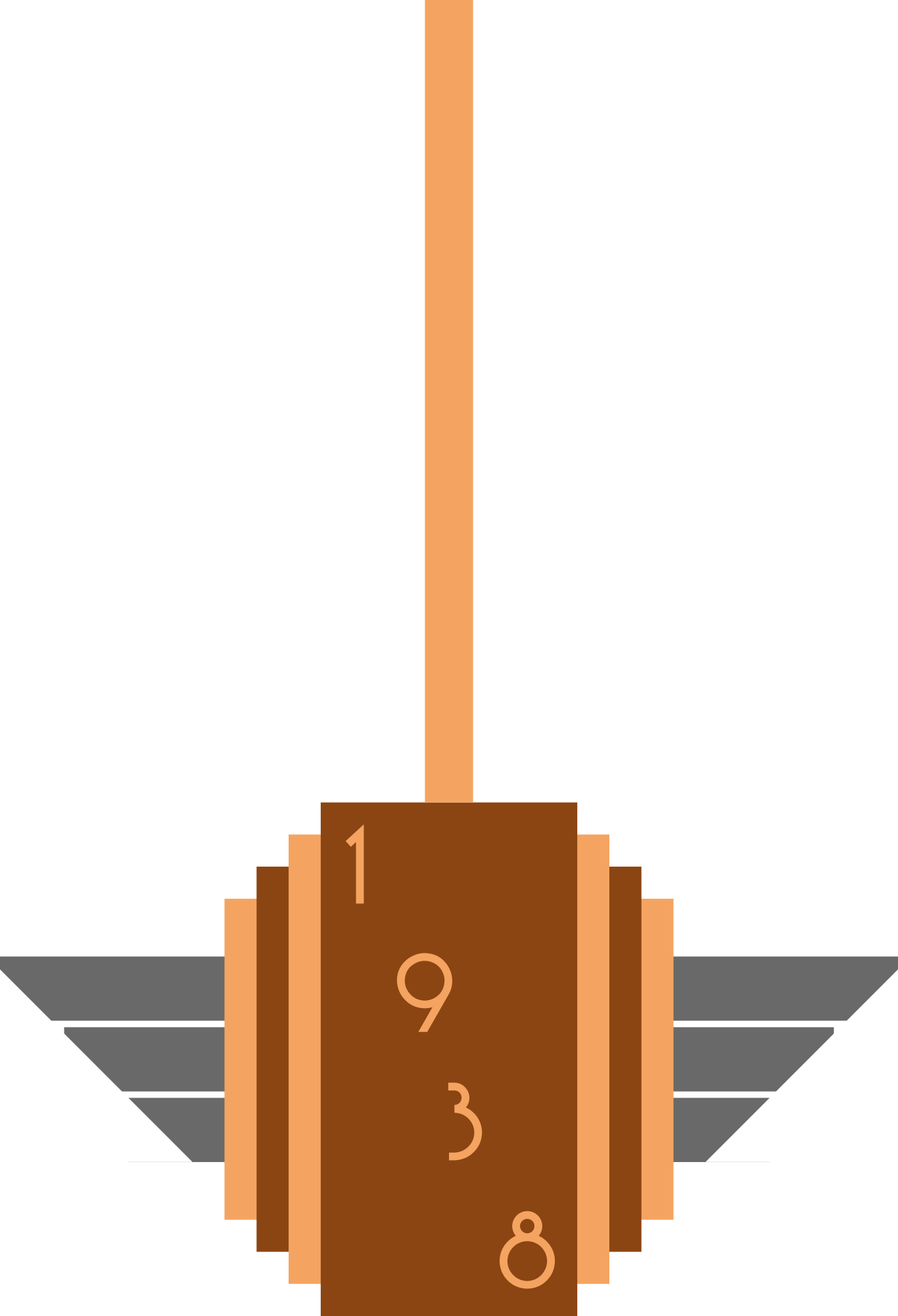 1930s Art Deco "wings" gable with flagpole.