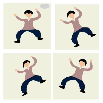 Four images of a figure dancing. A happy new year is written on their top.