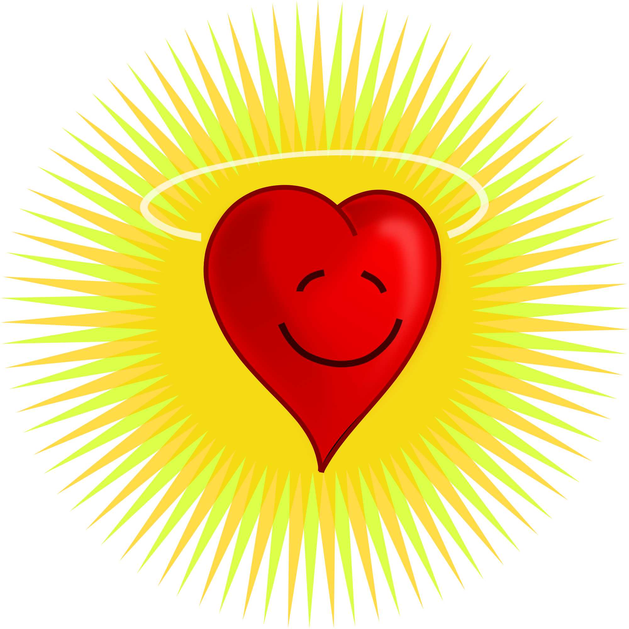 A cartoony happy heart with rays behind. Created in Inkscape.visit my studio www.kablam.in