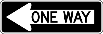 Short one-way traffic sign, pointing to left