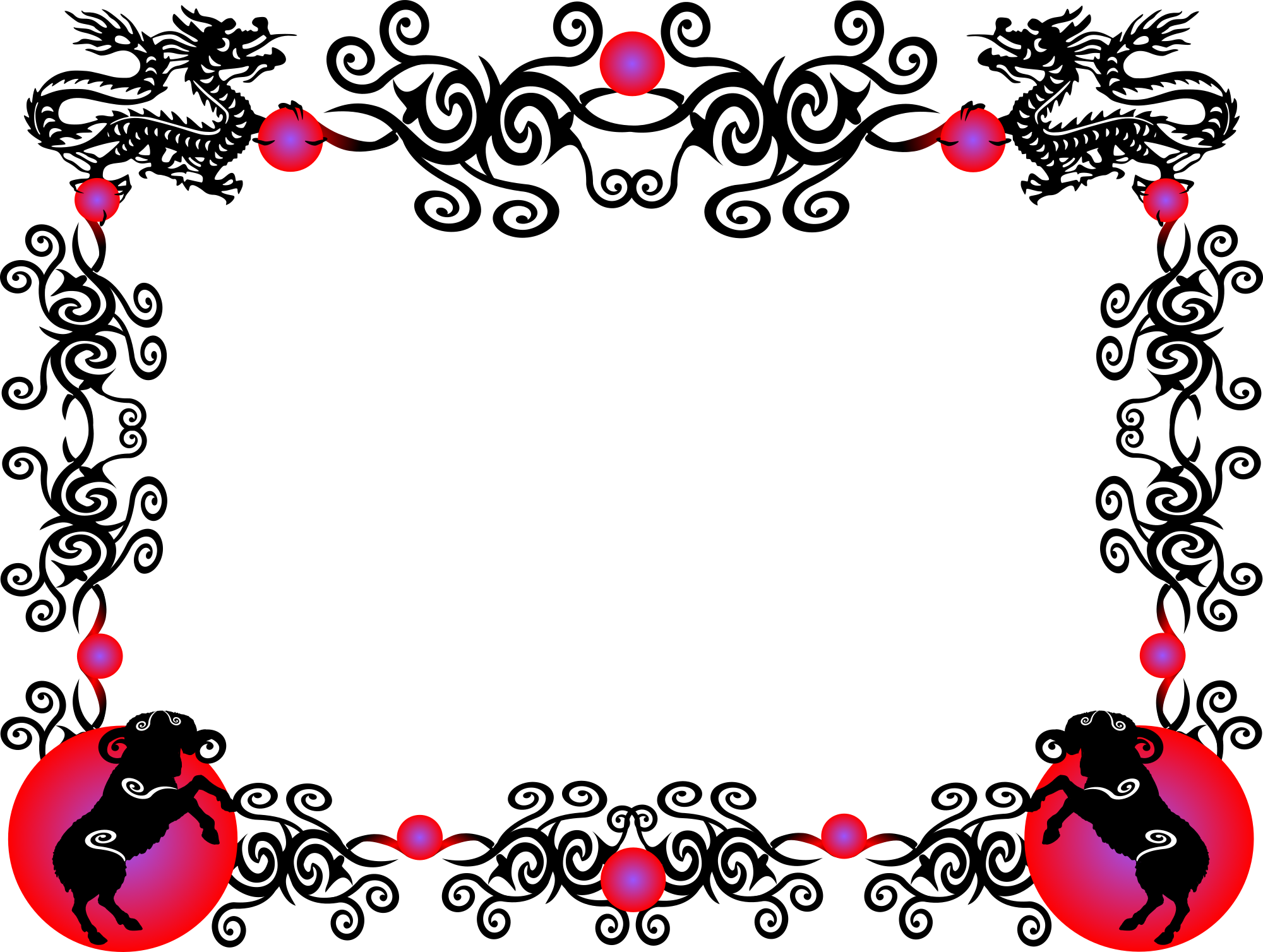 Chinese New Year border I created in 2014 for a program. Sheep and vine base from MS Clipart (defunct). Colors represent the specific animal in the zodiac.