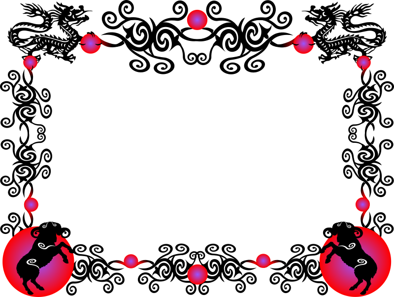Chinese New Year border I created in 2014 for a program. Sheep and vine base from MS Clipart (defunct). Colors represent the specific animal in the zodiac.