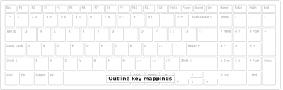 Keyboard outline for key mapping, laptop version.