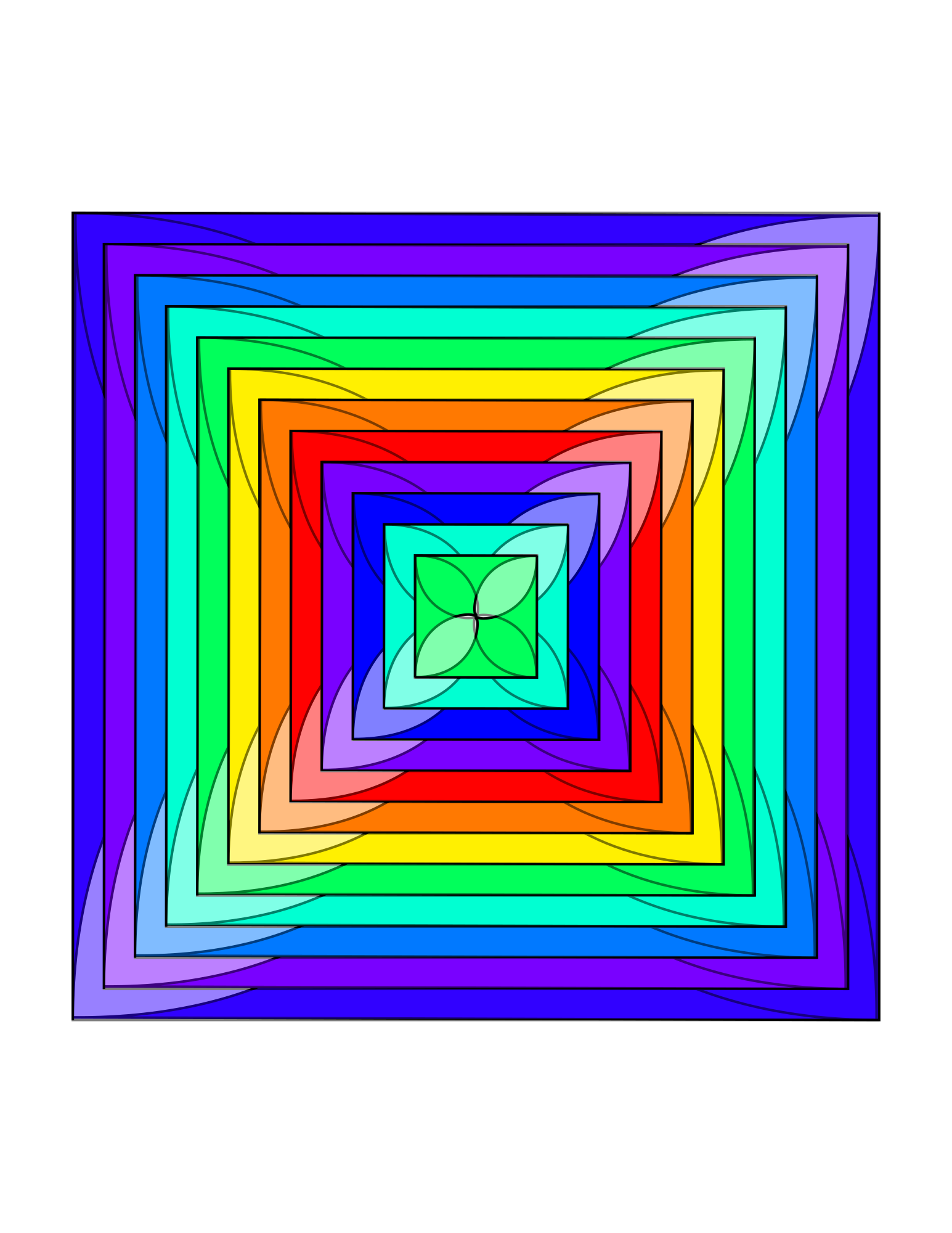 rainbow of squares with arrows on the corners