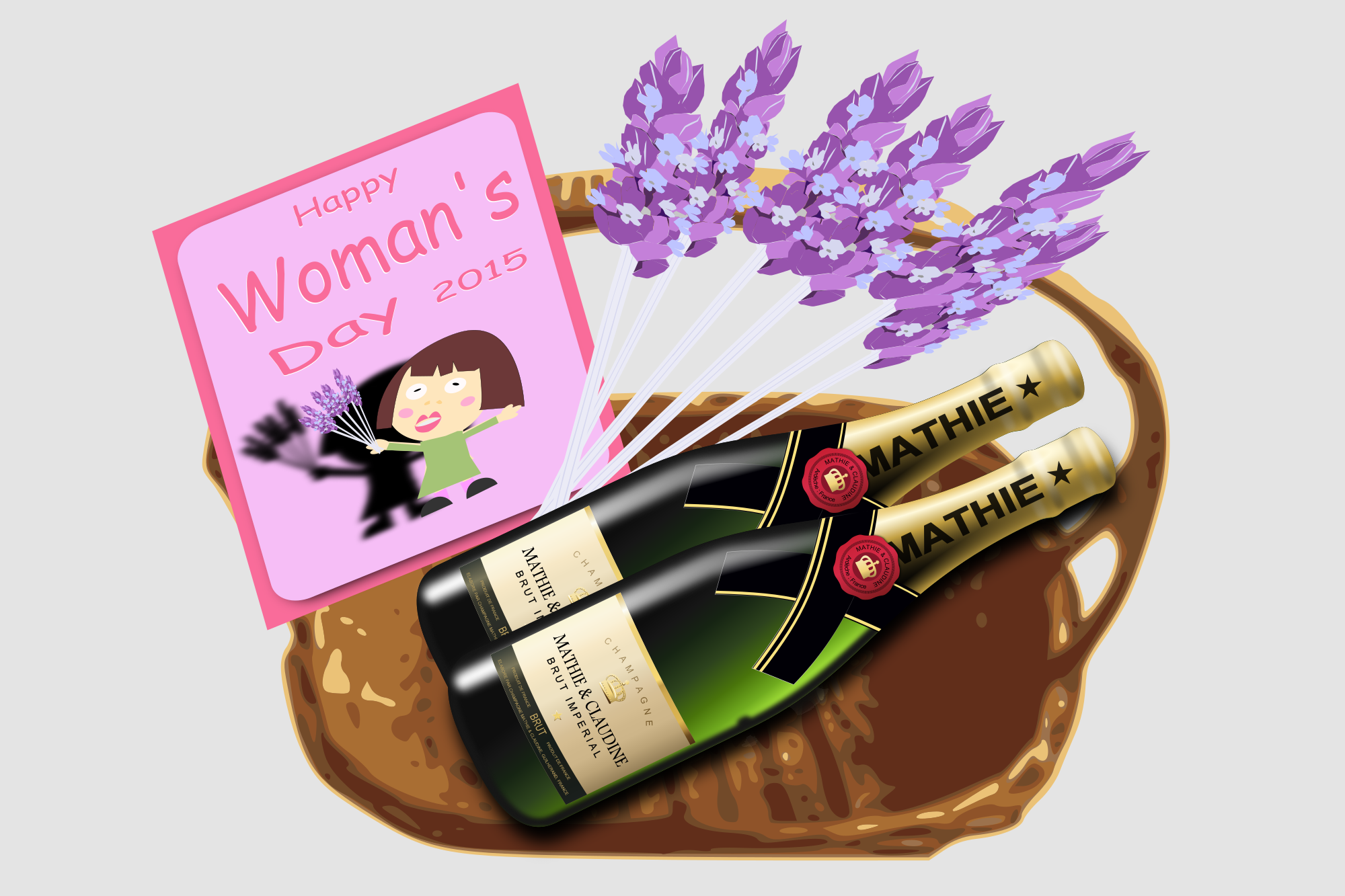 #womansday basket bottle card champagne flower womans day