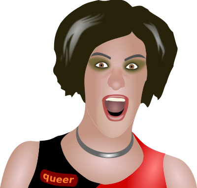A transgender with an open mouth.