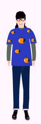 The image of a female who is wearing a t-shirt with oranges as pattern.Her name is "Asako" who is a imaginary character and has been an avatar of "yamachem 2" now.