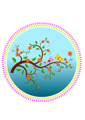 Birds on a branch with flowers