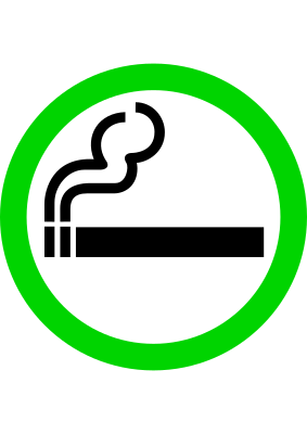 Of course I am not endorsing smoking (that is quite taboo these days, I'm sure!) but over here in this part of the world you can see "SMOKING AREA" signs (or "yes smoking" signs if you will) around to designate smoking areas. It's like the NO SMOKING sign but with a green circle and no crossed line. So That's what I'm providing here, for anyone who needs it!