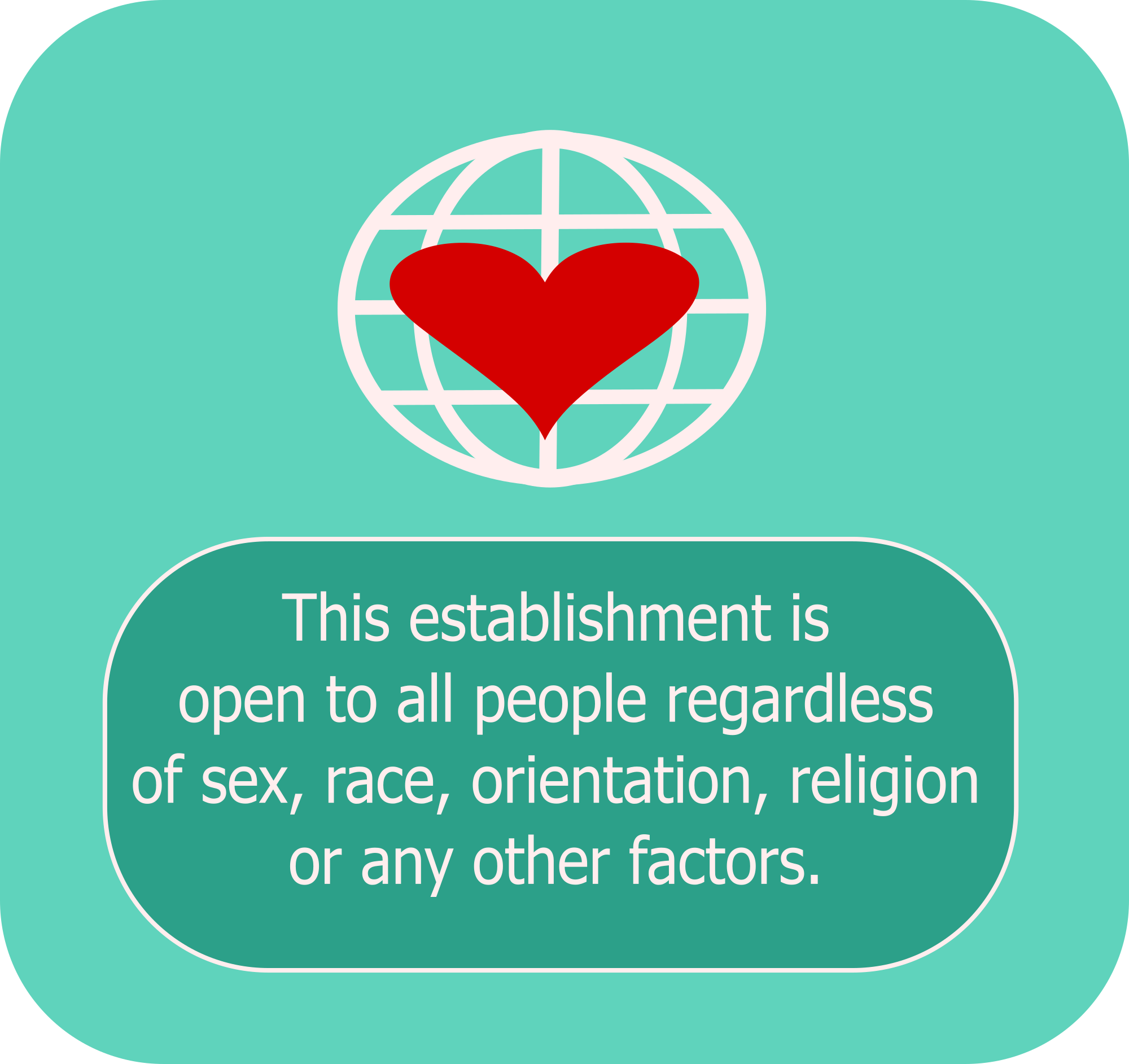 rejon talked about needing an open public domain "sign" to designate somewhere as an establishment that is open to all. I made this design so that it can hopefully be used by restaurants or hotels or shops or anywhere that wants to make it clear they are open to everyone. I hope this serves that purpose? In an ideal world we wouldn't need signs like this, it would be obvious that all shops are open to all people.