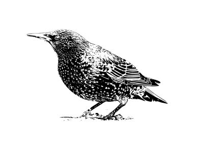 The starling is a vectorized photo, overworked by hand.