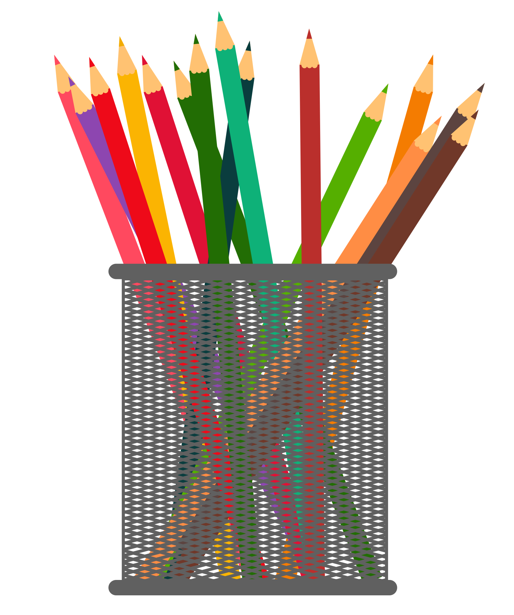 A design of a pencil pot into a flat, icon style image.