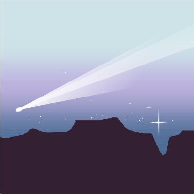 A comet streaks through the Belt of Venus above a desert landscape.