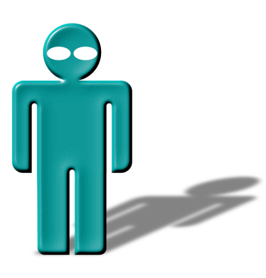 Stick man with drop shadow and intense eyes