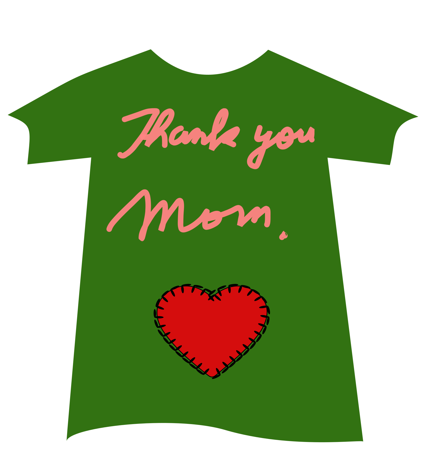 This t-shirt is in green and has the words read "Thank you Mom" and a heart-shaped design in red.