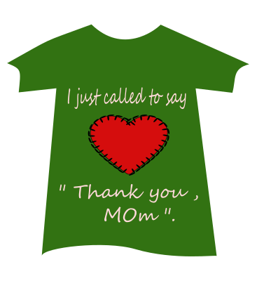 This Tshirt is in green and has the words read "I just called to say 'Thank you,Mom'" and a heart-shaped design in red.