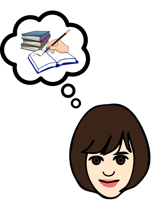 It's a girl thinking about writing.