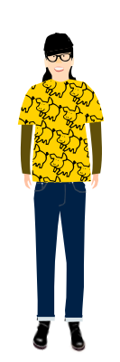 The image is a female character called "Asako" wearing a yellow T-shirt with a pig pattern . "Asako" is the avatar of "yamachem2".