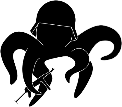An octopus ready for war. Was conceived as a mascot for a punk band, which split before the logo was used.