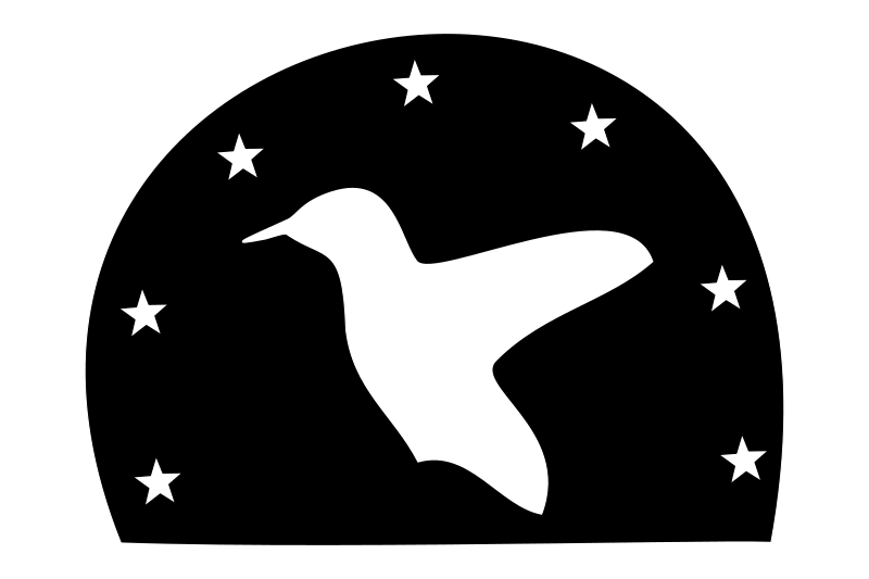 The image is a silhouette of a hummingbird and seven stars.