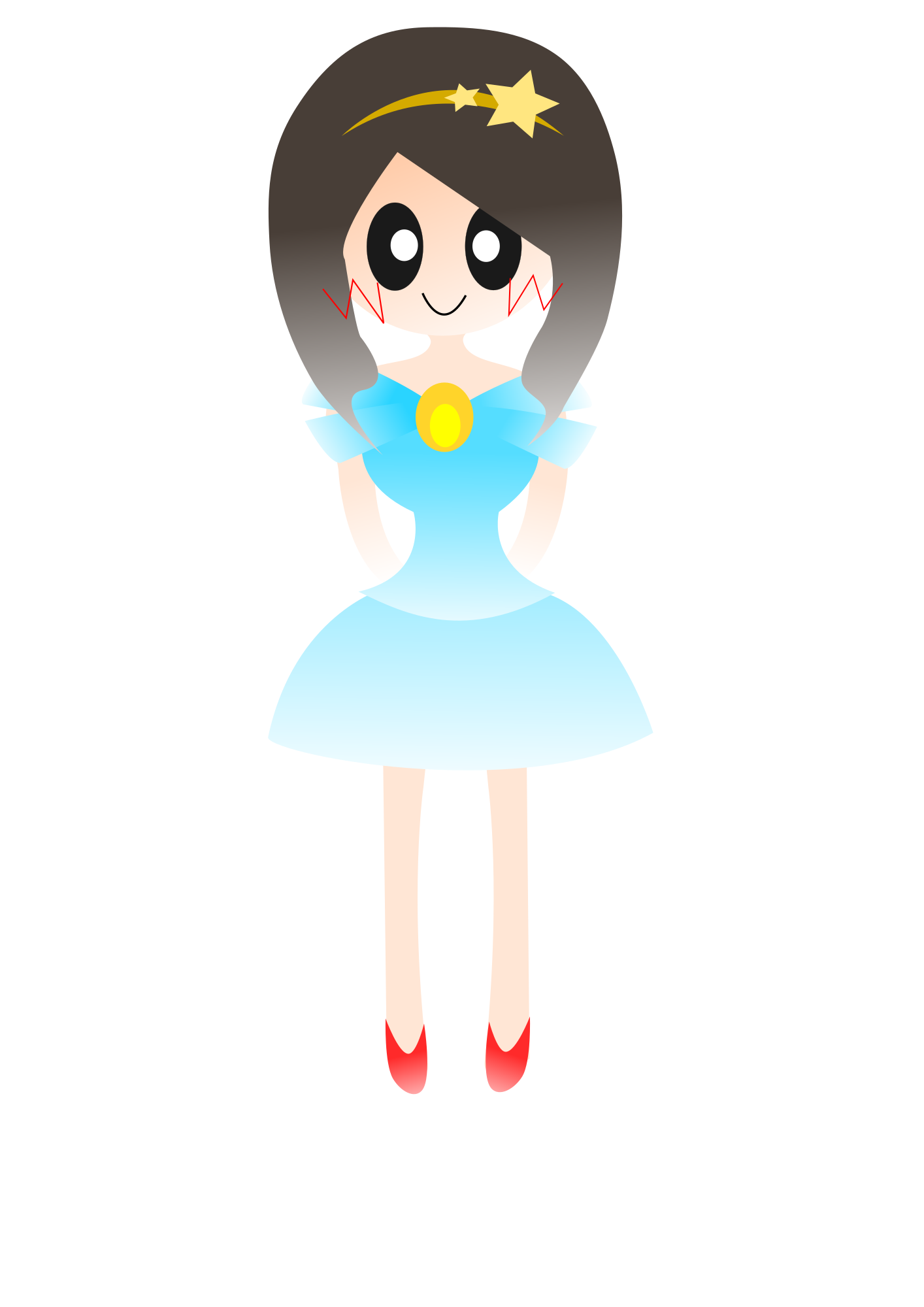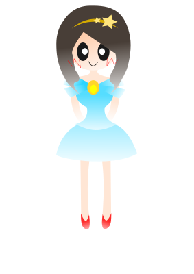 carton girl with dress and barrette.