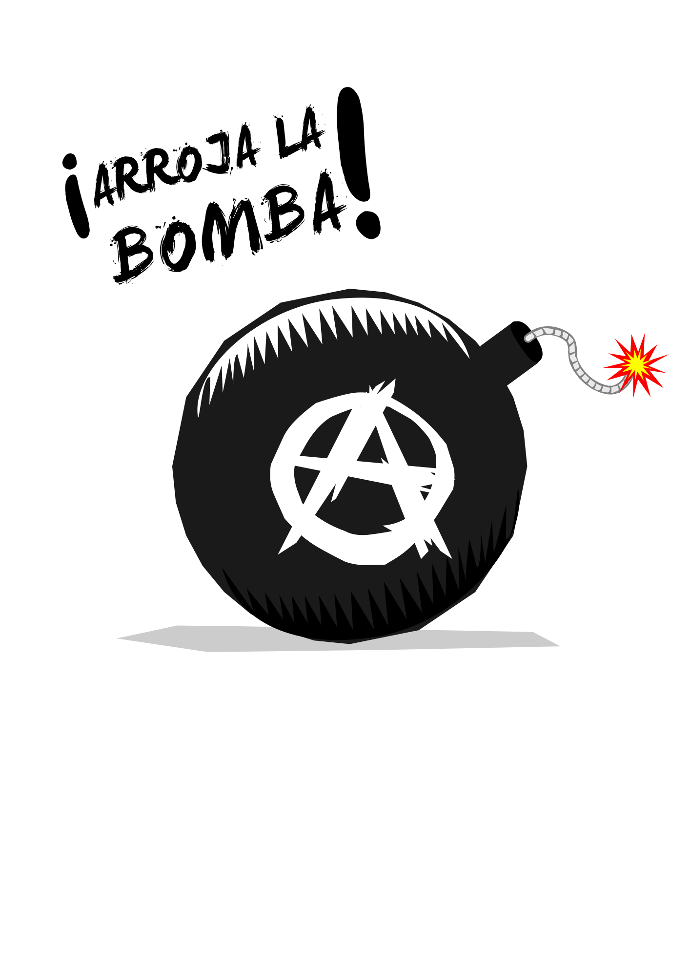 A cartoon style bomb with a circled "A". Wood cutout style shades.