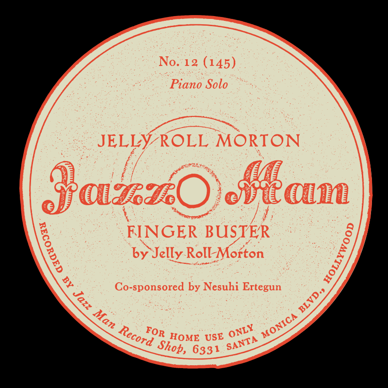 Jazz Man Records 78 label by Jelly Roll Morton, for the piano solo, Finger Buster, recorded in 1938.