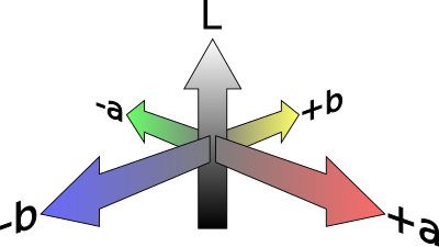 The CIE Lab (L*a*b*) color space shown as a 3 dimensional coordinate system.