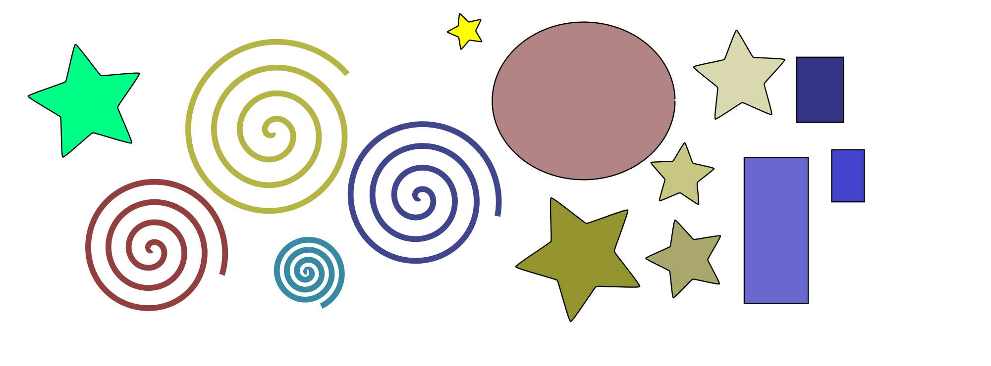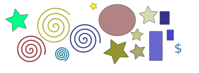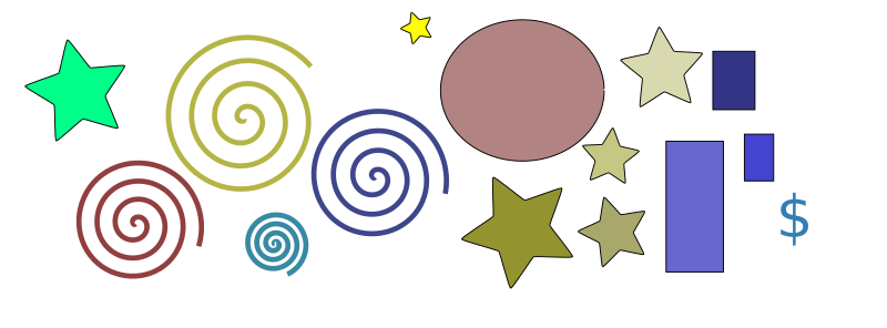 abstract image of spirals, stars, circles and rectangles