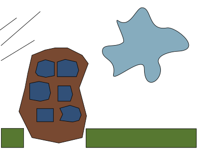A blobby building and cloud super simplified.