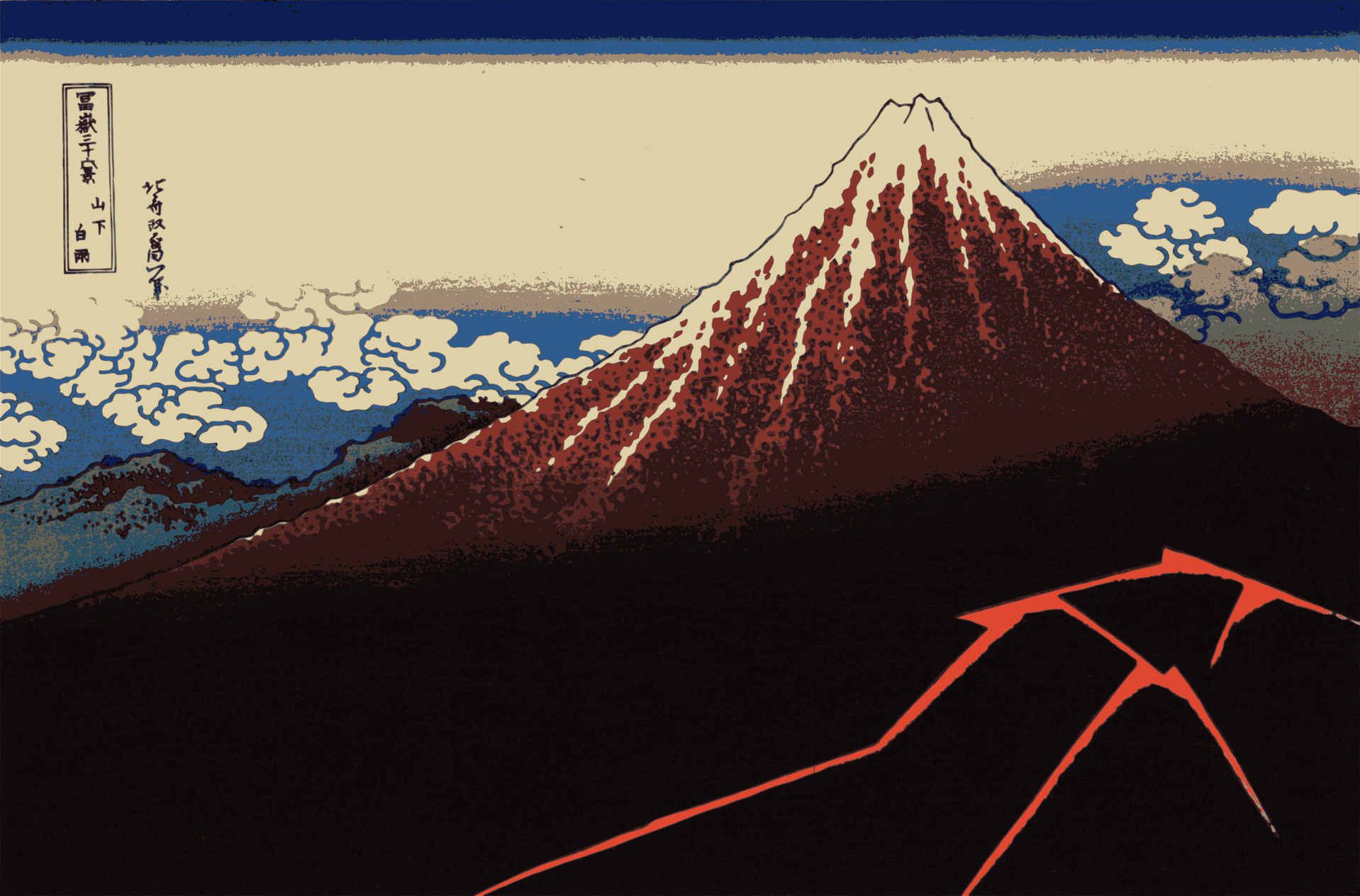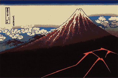 The original image is seen here: http://ja.wikipedia.org/wiki/%E5%AF%8C%E5%B6%BD%E4%B8%89%E5%8D%81%E5%85%AD%E6%99%AF#/media/File:Lightnings_below_the_summit.jpg