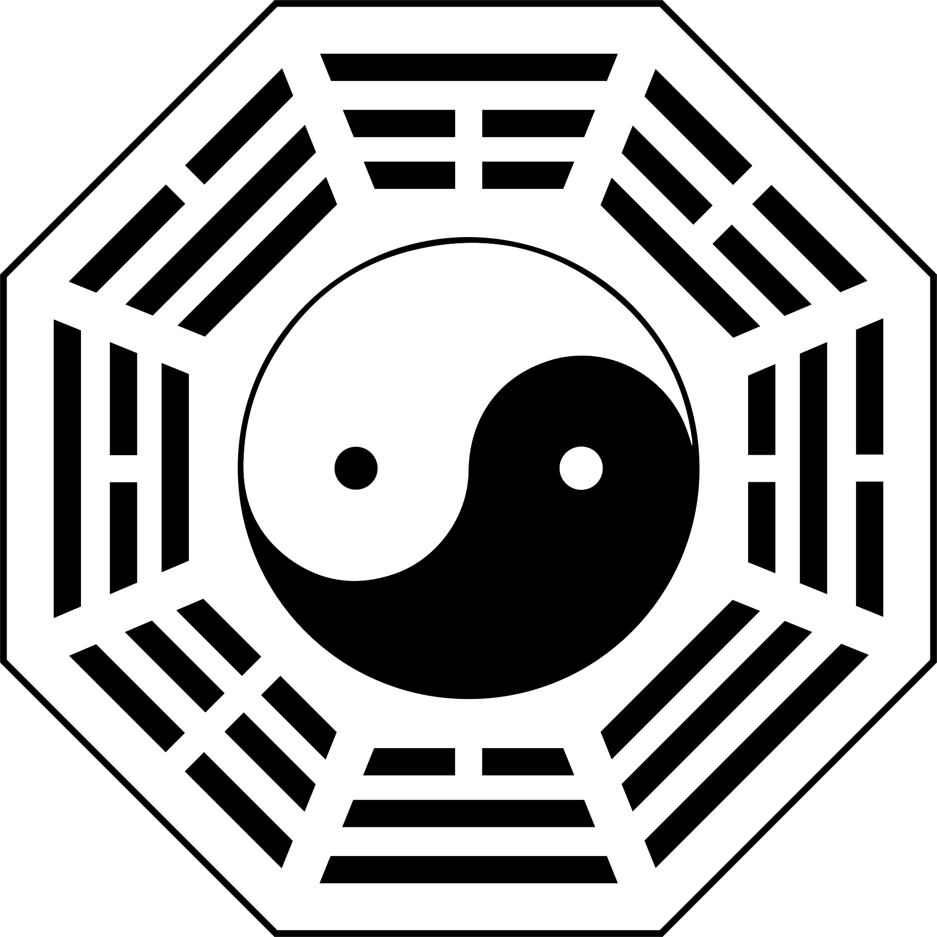 Redrawn vectorized version of http://en.wikipedia.org/wiki/File:Eight_Trigrams.jpg .