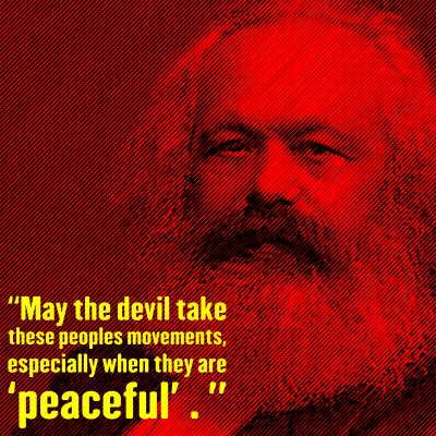 A portrait of Marx with a quote from him.