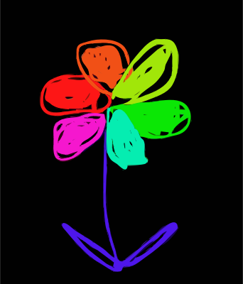 A colored flower on black background.