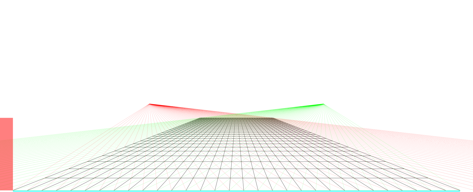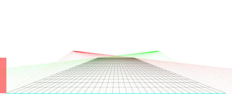 Added a sideview to the image to have a better sence on the depth and the field of view. The construction of the grid is geometrically perfect, but heavy distortion is caused by the viewer too close to the subject.