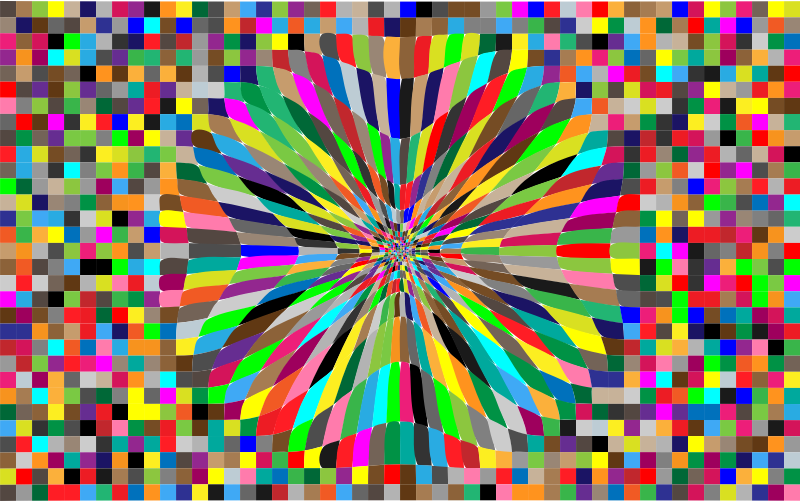 A gravity-like distortion of the colorful mosaic background.