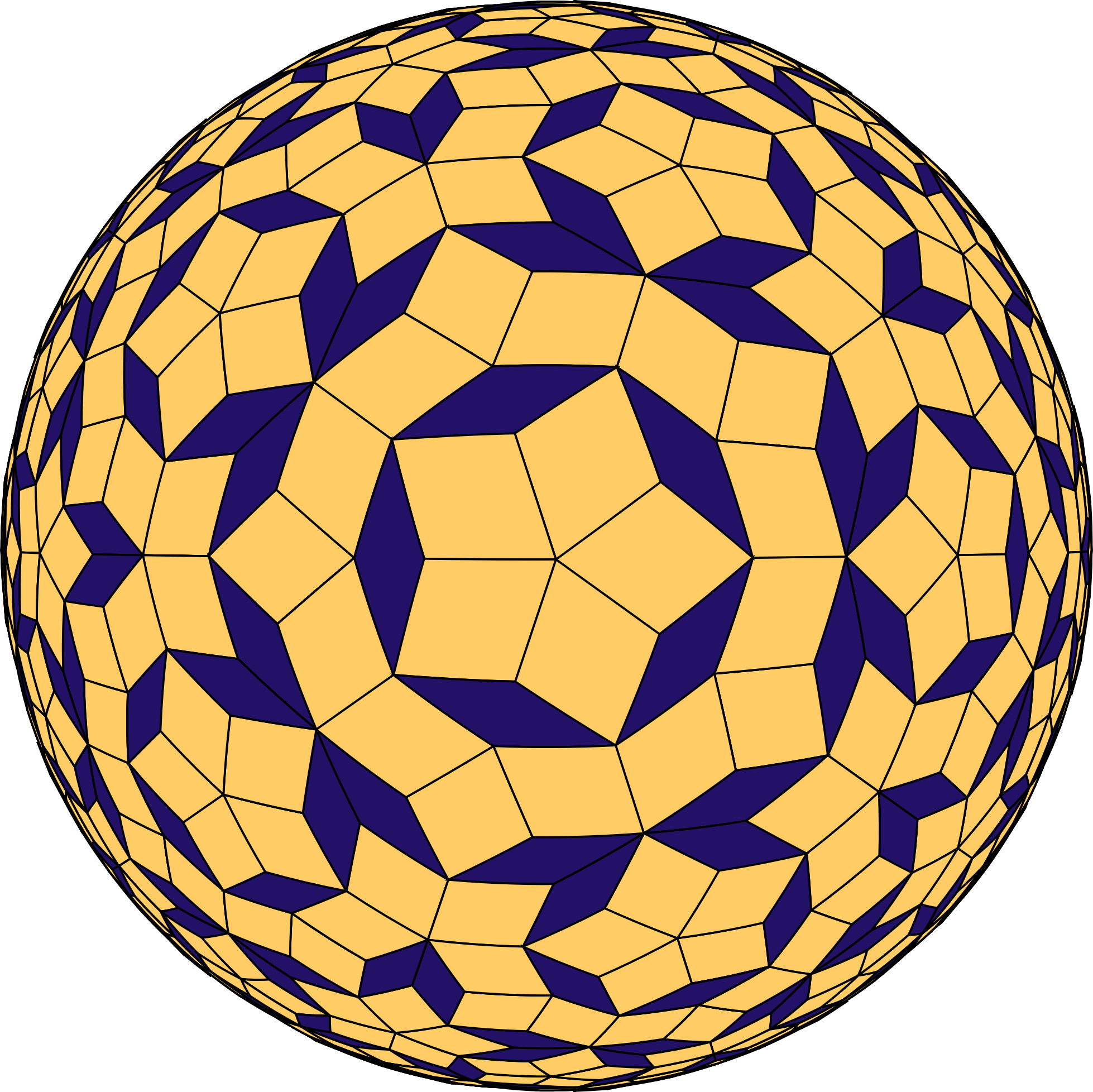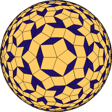 Penrose tiles projected onto a sphere.